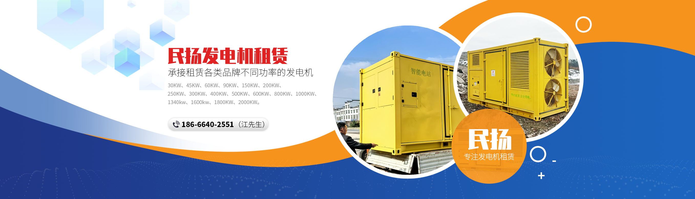 广州民扬发电机租赁有限公司,隶属于江西民扬发电机集团公司,创于2002年8月,成立于广东省广州市黄埔区茅岗路。公司主要经营项目有:广州发电机出租服务、柴油发电机维修、二手发电机回收、二手发电机销售、进口发电机保养等相关业务。同时我们专业为工厂及相关单位配套安装电房及检修工程、消音环保工程、尾气排放工程、电缆线安装工程、水冷改造工程、水塔安装工程等相关机电项目。广州发电机出租功率:30KW、45KW、60KW、90KW、150KW、200KW、250KW、300KW、400KW、500KW、600KW、800KW、1000KW、1340kw、1600kw、1800KW、2000KW...